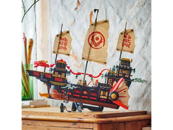 Tato interaktivní dobrodružná stavebnice obsahuje vše, co fanoušci nindžů potřebují k tomu, aby si připomněli příběhy z 3. řady televizního seriálu NINJAGO Dračí povstání: ozubené kolo pro otevírání a zavírání plachet, odnímatelné střechy a podlahy pro přístup do interiéru lodi se sushi barem a stolem v hlavní kajutě, který lze sklopit a odhalit tak tajný počítač.