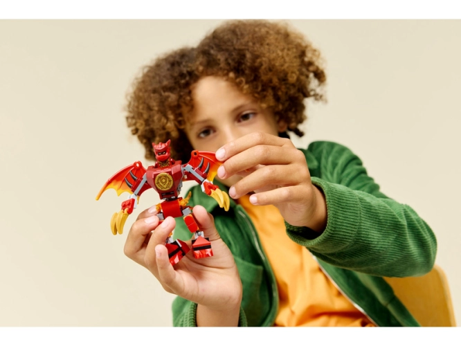 - ROBOTICKÝ OBLEK PRO DĚTI – Se stavebnicí Kaiův bojový balíček s dračím oblekem (71851) si kluci a holky od 6 let můžou hrát na hrdiny z 4. řady seriálu NINJAGO® Dračí povstání
