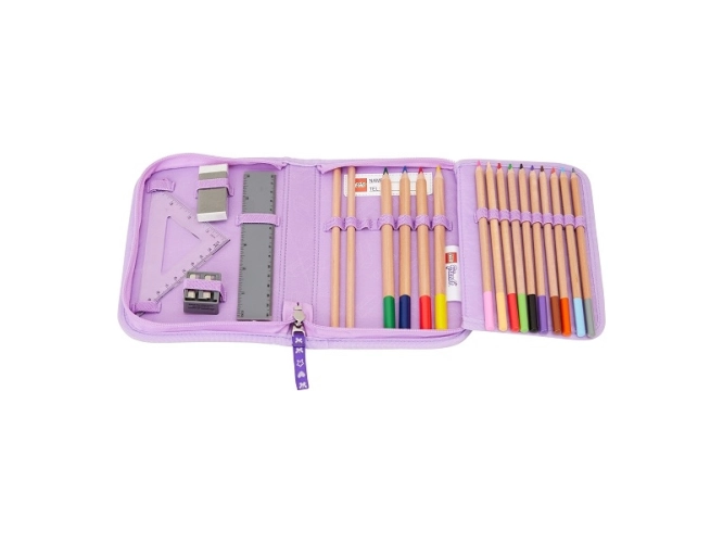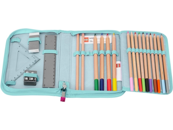 Pouzdro s náplní a motivem LEGO obsahuje všechny potřebné psací potřeby do školy. Pouzdro je dodáváno s náplní: 2 grafitové tužky, 10 barevných pastelek, 4 široké barevné pastelky, guma na gumování, ořezávátko, rovné a trojúhelníkové pravítko. Pouzdro obsahuje rozvrh hodin v průhledné kapse a všitou vnitřní jmenovku. Je vyrobeno z odolného materiálu bez použití PVC. Ideální pro první ročník základní školy.