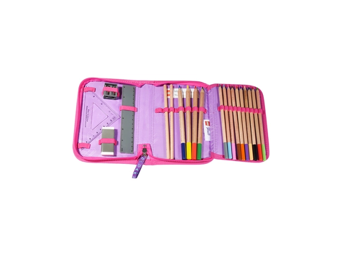 Pouzdro je navrženo tak, aby poskytovalo dostatečný prostor pro všechny nezbytné školní potřeby, které jsou již v obsahem balení. Školní potřeby lze připevnit pomocí 22 poutek.