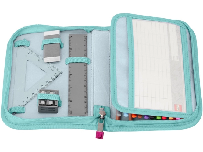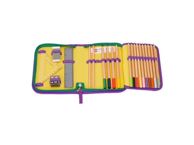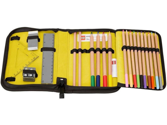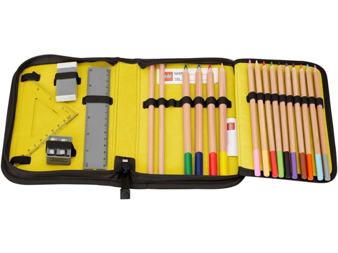 Pouzdro s náplní a motivem LEGO obsahuje všechny potřebné psací potřeby do školy. Pouzdro je dodáváno s náplní: 2 grafitové tužky, 10 barevných pastelek, 4 široké barevné pastelky, guma na gumování, ořezávátko, rovné a trojúhelníkové pravítko. Pouzdro obsahuje rozvrh hodin v průhledné kapse a všitou vnitřní jmenovku. Je vyrobeno z odolného materiálu bez použití PVC. Ideální pro první ročník základní školy.