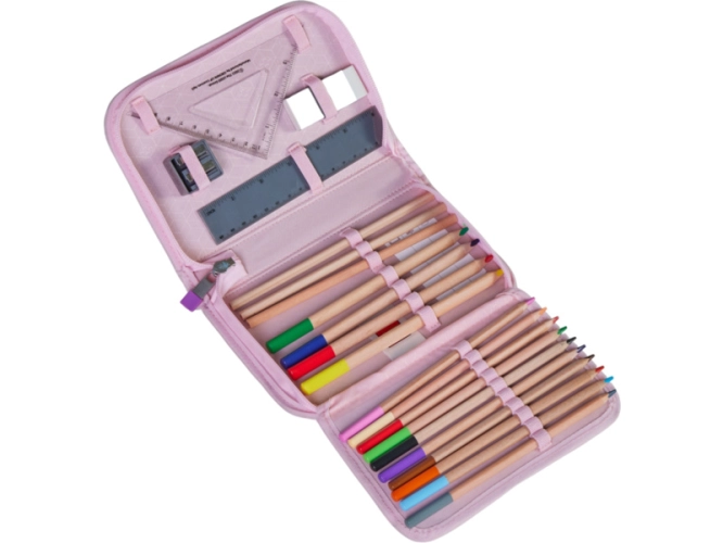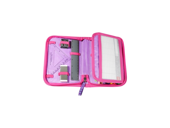 Pouzdro je navrženo tak, aby poskytovalo dostatečný prostor pro všechny nezbytné školní potřeby, které jsou již v obsahem balení. Školní potřeby lze připevnit pomocí 22 poutek.
