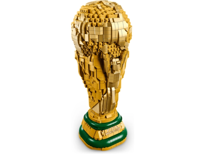 Model zobrazuje dvě lidské postavy zachycené v pohybu, které drží nad hlavami zeměkouli, ikonický globus. Ve spodní části najdete cedulku se jmény předcházejících vítězů Mistrovství světa ve fotbale. Horní část trofeje LEGO lze otevřít a odhalit tak minifigurku s logem Mistrovství světa ve fotbale 2026, která drží miniaturní trofej, a pozadí s logem Mistrovství světa ve fotbale 2026. Miniaturní scénu lze ponechat uvnitř trofeje nebo ji můžete vyjmout a vystavit vedle ní.