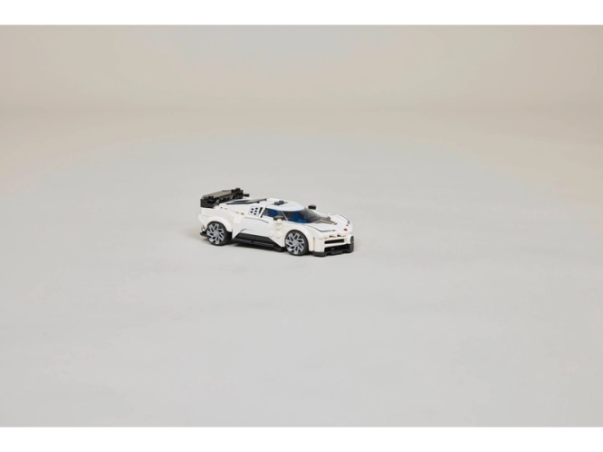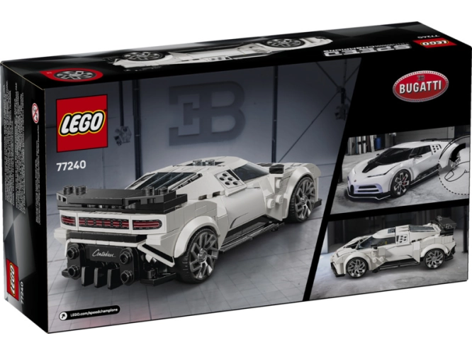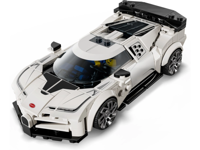 Model LEGO® vozu Bugatti obsahuje 5 kulatých otvorů sání na boku, jedinečné ráfky, světlomety, mřížku chladiče ve tvaru podkovy, převislé zadní křídlo a 4 zadní výfuky. Součástí této stavebnice auta LEGO je také minifigurka řidiče Bugatti, kterou děti usadí za volant a přehrají si s ní akční scénky.