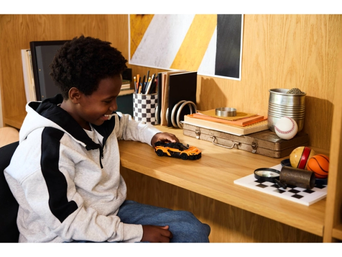 - AUTENTICKÉ DETAILY – Obsahuje designové detaily skutečného supersportovního vozu, včetně nastavitelného zadního křídla pro jízdu nebo závodění, zadního motoru, kokpitu a informačně-zábavní obrazovky