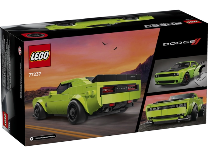 Toto dvoudveřové kupé je vůbec první moderní auto Dodge, které se objevilo v řadě LEGO Speed Champions. Model má dlouhou kapotu, vypouklé sání na kapotě, výraznou přední masku a dvojitý výfuk. Součástí sběratelského modelu je také minifigurka řidiče, se kterou se děti a fanoušci sporťáků můžou pustit do závodění na trati i na silnici.