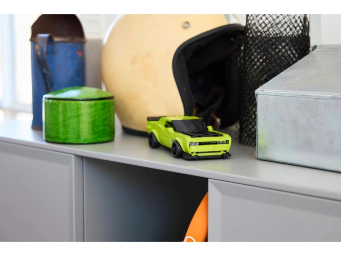 - Výkonný sporťák pro malé stavitele – Děti od 9 let a fanoušci výkonných sporťáků si postaví a vystaví závodní model LEGO® Speed Champions Sportovní auto Dodge Challenger SRT Hellcat