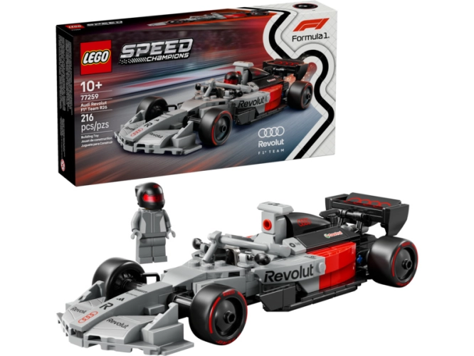 Kluci a holky od 10 let mohou sbírat, stavět, vystavovat a závodit s autem LEGO® Speed Champions Audi Revolut F1® Team R26 (77259). Autentický výstavní model závodního auta ze zcela nového týmu, který se v roce 2026 připojí k Formuli 1, nezapomínána designové detaily, které odpovídají novým předpisům pro vozy F1 pro novou sezónu. Model závodního auta Audi Revolut F1® Team R26 má kokpit, zadní křídlo, autentická loga sponzorů, přední odpružení kol a pneumatiky s potiskem „Pirelli“. Součástí je také minifigurka v outfitu týmu Audi Revolut F1® a helmě, kterou lze umístit do kokpitu a vyslat na závod.
