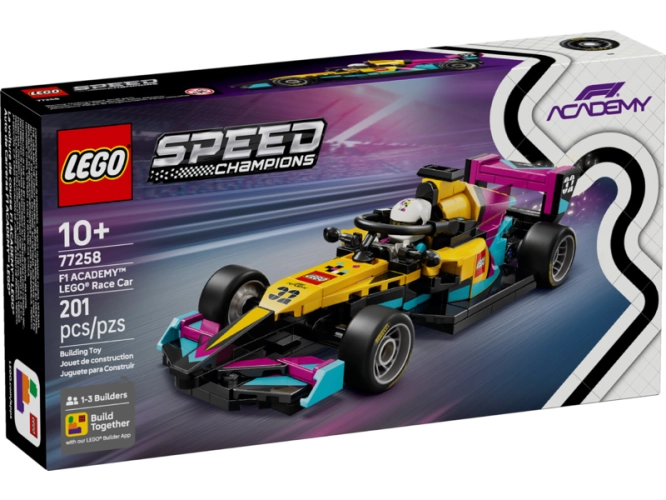 V roce 2026 se the LEGO® Group poprvé připojí na startovací dráhu F1 ACADEMY™ s vlastním vozem F1 ACADEMY, a kluci a holky od 10 let si budou moct postavit vlastní výstavní model. Model LEGO® Speed Champions Závodní auto LEGO® F1 ACADEMY™ (77258) je jako stvořený na hraní i vystavení, a obsahuje řadu stejných detailů jako model používaný v F1 ACADEMY – závodní sérii určené výhradně pro ženy.