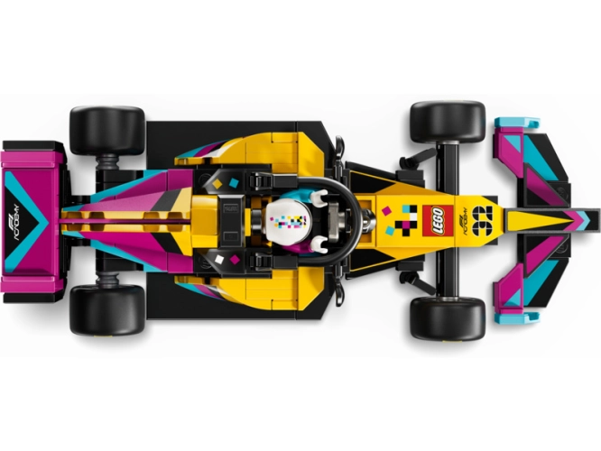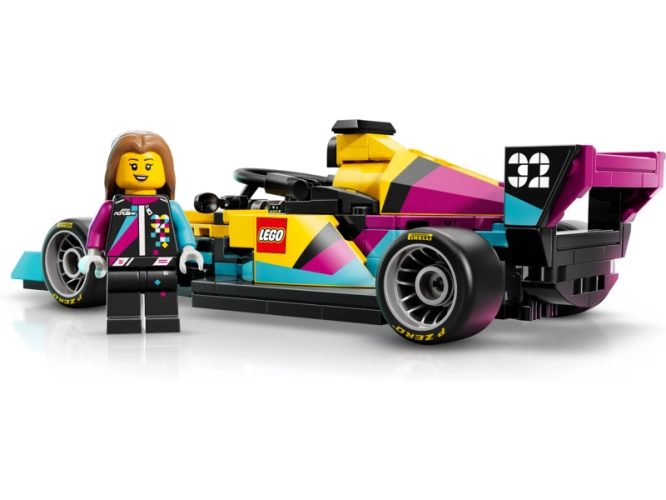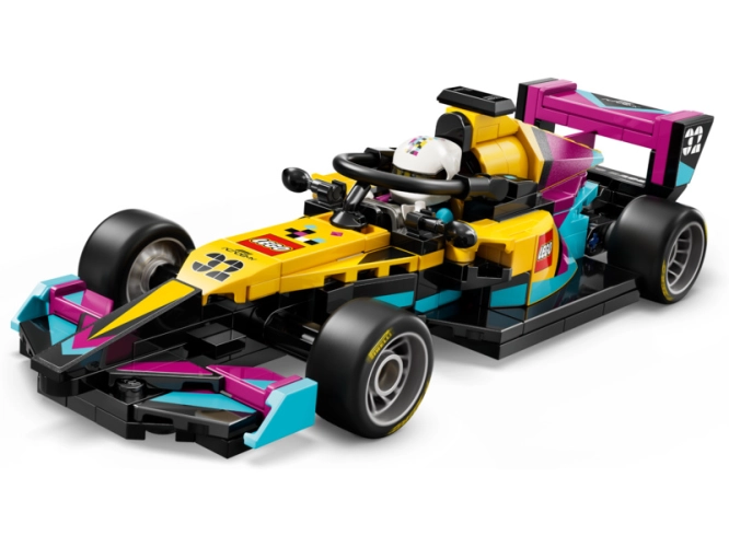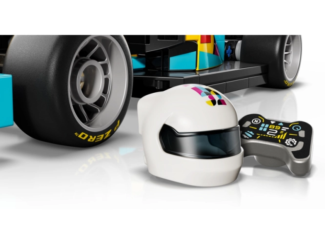 Tento vůz F1 ACADEMY se pyšní kokpitem, zadním křídlem a pneumatikami s potiskem „Pirelli“. Součástí závodního auta je také minifigurka řidičky F1 ACADEMY s helmou, parukou a hasákem, kterou děti můžou usadit do kokpitu a pustit se s ní do superrychlé akce.