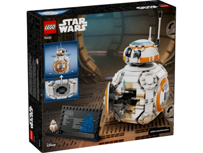 Nenechte si ujít úchvatnou roztomilou stavebnici LEGO® Star Wars™ Astromechanický droid BB-8™ pro děti. Zachyťte autentické detaily ikonického droida z filmu Star Wars: Síla se probouzí pomocí kostek LEGO. Pohybujte figurkou BB-8 po rovném povrchu a roztočte jeho hlavu náhodnými směry. Otevřením poklopu na těle BB-8 odhalíte „ruku s hořákem“ jako ze scény, kdy ukázal „palec nahoru“ Finnovi.