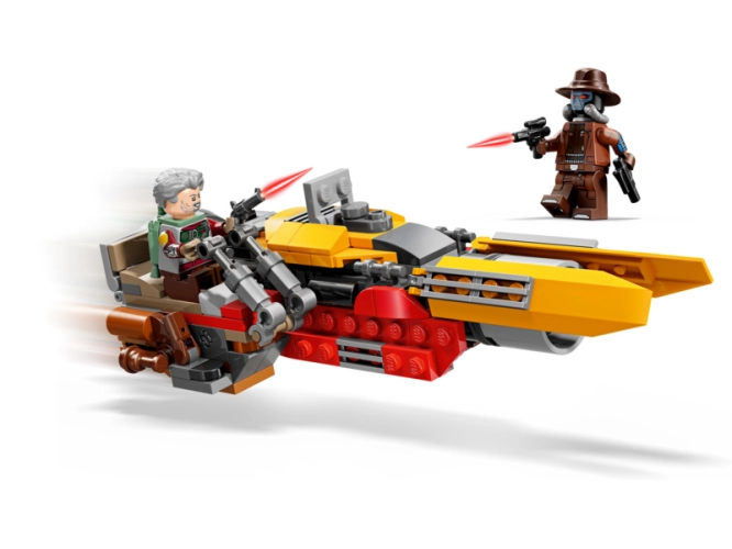 - 2 MINIFIGURKY LEGO® STAR WARS™ – Vybavte Cobba Vantha blasterovou pistolí, tryskovým batohem a brněním a helmou Boba Fetta, aby mohl čelit Cadu Baneovi se 2 blasterovými pistolemi