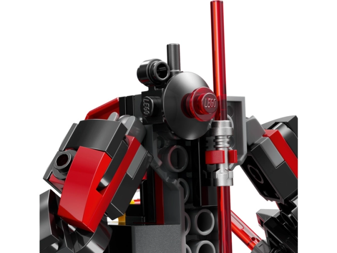 - Minifigurka LEGO® Star Wars™ Darth Maul – Minifigurka LEGO této oblíbené postavy ze světa Star Wars má dvojitý červený světelný meč, který lze připevnit na zadní část robotického obleku