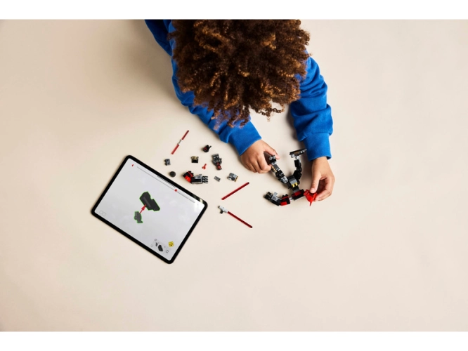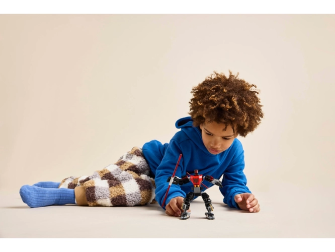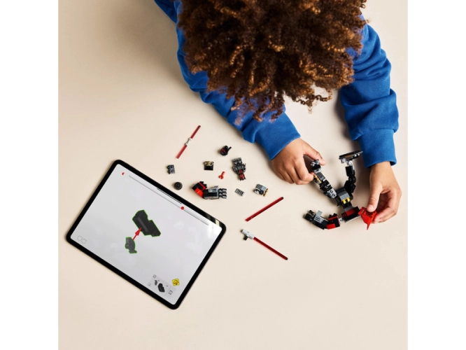 - Sestavitelný robotický oblek LEGO® – Robotický oblek má pohyblivé ruce, paže, nohy a chodidla, otevírací kokpit pro minifigurku LEGO a navíc velký červený světelný meč s dvojitým ostřím