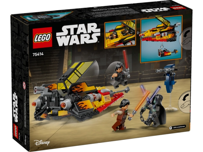 Připravte se na rychlou akční hru s modelem Sněžný spídr Force Burner (75414). Představuje úchvatný dárek ze světa Star Wars™ pro kluky, holky a fanoušky od 7 let a obsahuje autentické prvky jedinečného sněžného spídru z 2. řady seriálu LEGO® Star Wars: Přestavba galaxie. Spídr je zdobený potisky plamenů, má otevírací dvojitý kokpit se skrytou odnímatelnou spídrovou motorkou a zadní vystřelovač. Zatlačte na sedadlo v zadní části kokpitu (nebo na hlavu minifigurky LEGO, která v něm sedí) a nastartujte spídrovou motorku.