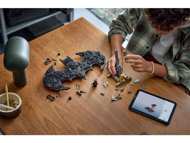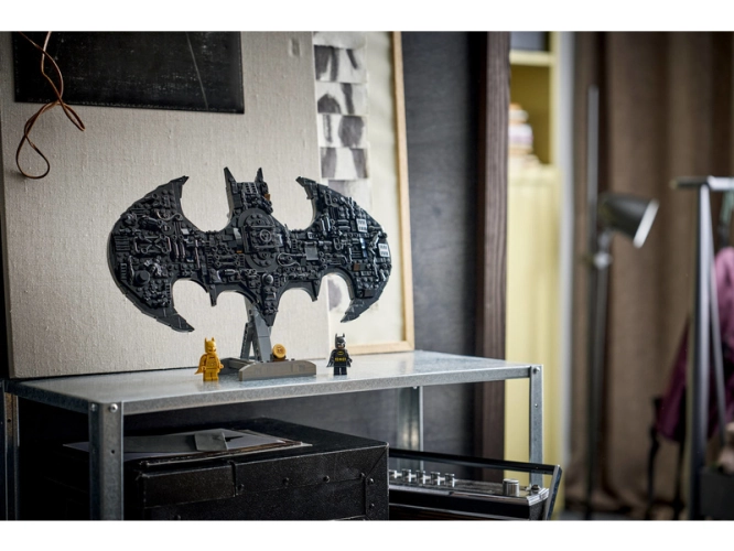 Signál Batmana lze vystavit na podstavci nebo připevnit na zeď pomocí integrované podpěry. Model je zdoben známými předměty ze světa DC, které lze odnímat a přemísťovat, včetně Batarangů a kladiva Harley Quinn™. Stavebnice obsahuje zlatou minifigurku Batmana a zlatou výroční minci. Nechybí tradiční minifigurka Batmana, kterou lze umístit do otevíracího poklopu uprostřed modelu, který vypadá jako dveře trezoru na obleky v Batmanově jeskyni. Stavebnice obsahuje 678 dílků.