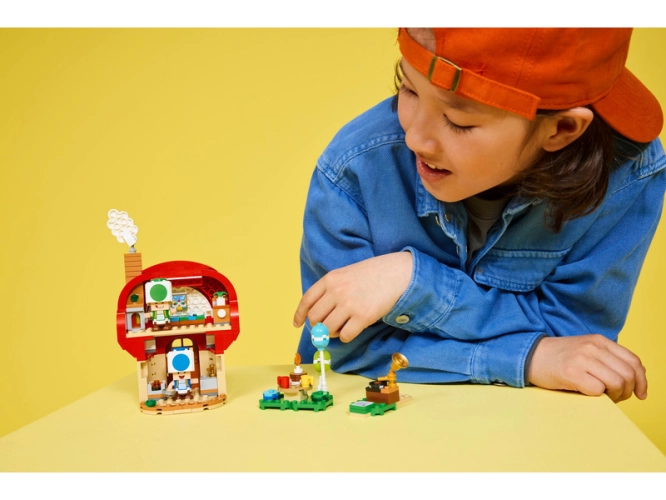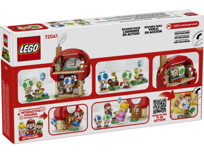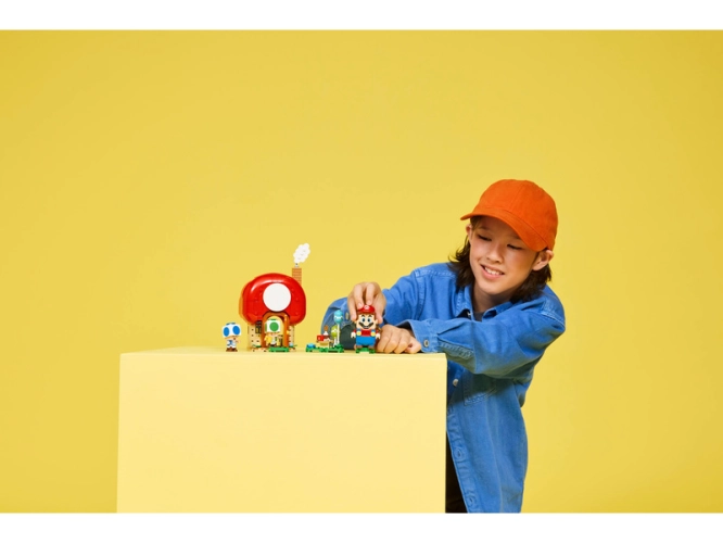 Přidejte k tomuto setu figurku LEGO® Mario™, LEGO® Luigi™ nebo LEGO® Peach™ (ze setů 71439, 71440, 71441 nebo 72043 – prodávají se samostatně) a užijte si digitální interaktivní hraní, včetně písniček, které začnou hrát při šlápnutí na akční prvek gramofonu a zvuku zvonku na prahu domu. Návod na stavění této stavebnice Nintendo® LEGO najdete v krabici nebo v aplikaci LEGO Super Mario. Nenechte si ujít další stavebnice LEGO Super Mario (prodávají se samostatně). Tato stavebnice obsahuje 276 dílků.