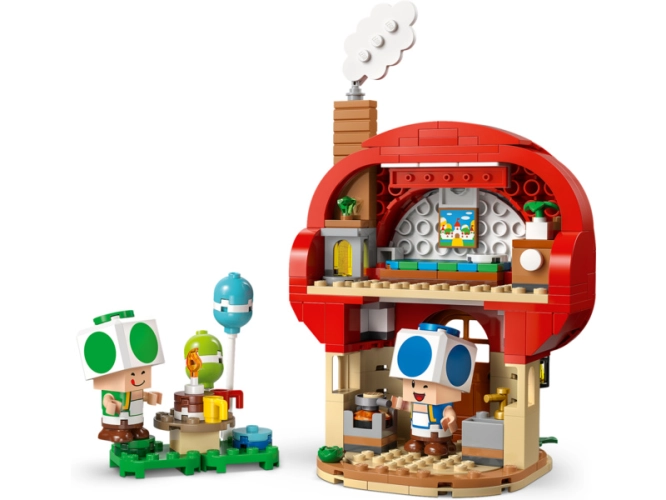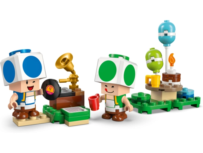 - Čas na oslavu – V domku Toada najdet kuchyň a ložnici (s obrazem Peachina hradu) a odnímatelný nábytek pro snadné hraní. Stavebnice obsahuje také piknikový stůl, gramofon a doplňky na oslavu