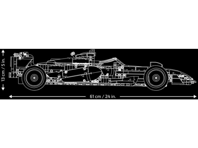 - ROZMĚRY – Stavebnice se skládá z 1 675 dílků a model auta LEGO® F1® měří přes 13 cm na výšku, 61 cm na délku a 25 cm na šířku