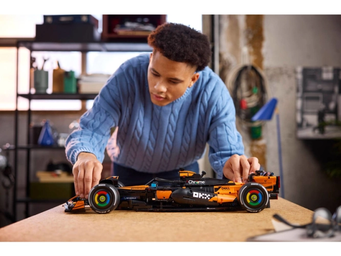 Odstartujte vítězný závod s propracovaným modelem LEGO® Technic Auto McLaren MCL39 F1® (42228) pro dospělé. Tato stavebnice je úžasný dárek pro fanoušky motosportu a nabízí obohacující stavitelský zážitek i výzvu při sestavování detailních prvků tohoto modelu F1® v měřítku 1:8. Sestavte si detailní model auta McLaren MCL39 F1® z roku 2025 a poskládejte řízení, odpružení, převodovku a diferenciál. Aktivujte systém DRS a pak odejměte kryt motoru, abyste mohli zkontrolovat motor V6.