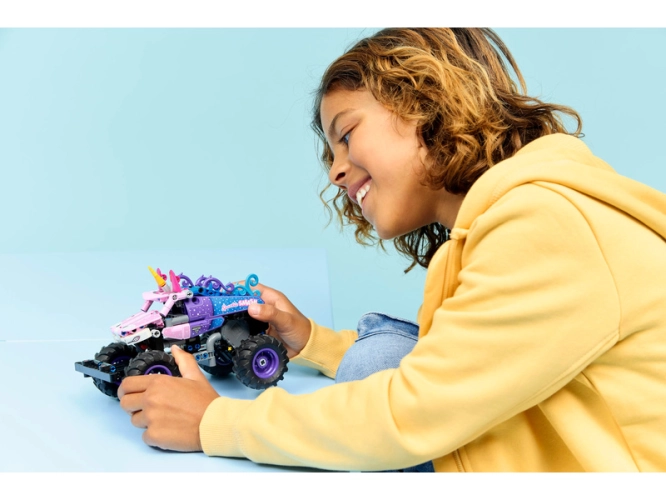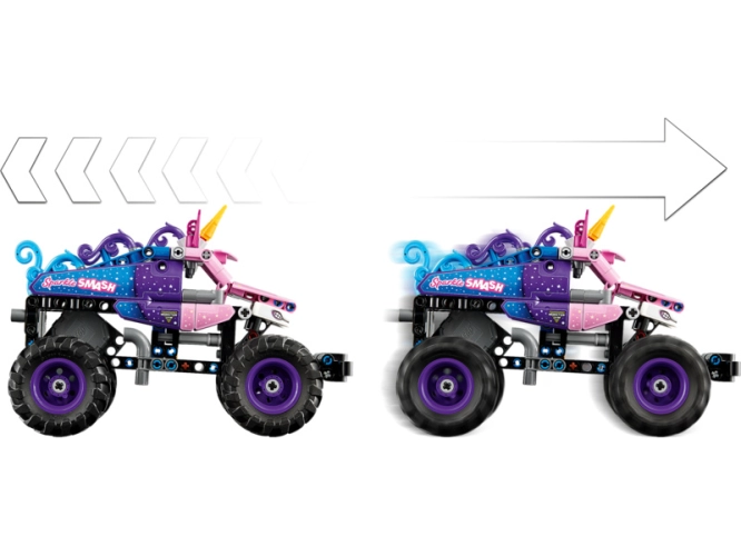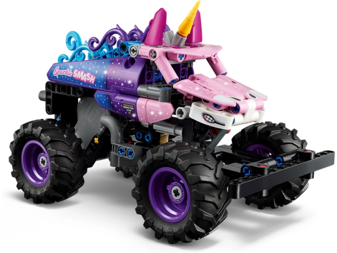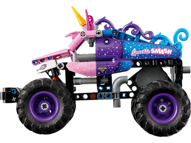- STAVEBNICE MONSTER JAM™ – Stavebnice LEGO® Technic Monster Jam™ Sparkle Smash™ s natahovacím motorem (42220) nabízí hodiny zábavy pro kluky a holky od 7 let, které milují monster trucky a hračky s jednorožci