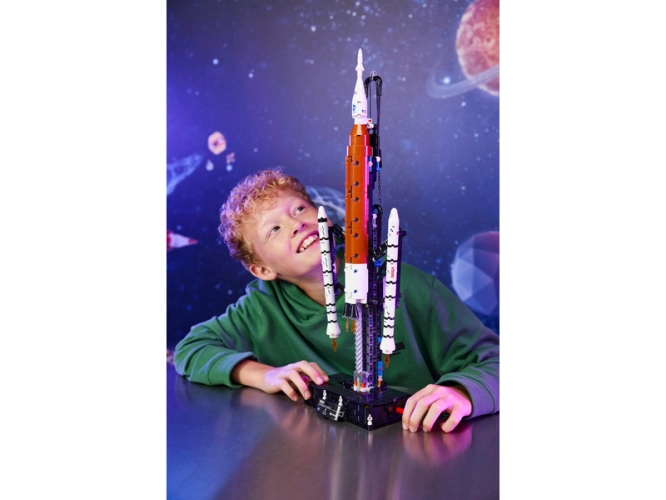 Tato stavebnice rakety byla vyvinuta ve spolupráci s NASA a ESA a umožňuje dětem prozkoumat vesmírný startovací systém, který vynese kosmickou loď Orion na oběžnou dráhu Měsíce. Stavebnice obsahuje 4 nanofigurky astronautů, zábavné detaily v podobě modrých plamenů a informační panel, který hotový model skvěle doplní na výstavce.
