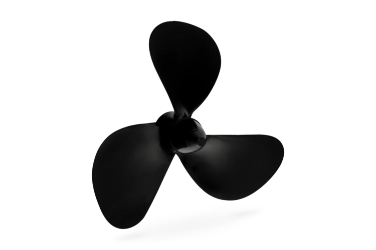 Lodní šroub třílistý pro montáž pod loď, stoupání 0,53x průměr, plast plněný skelnými vlákny, závit M2.