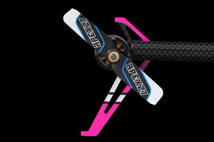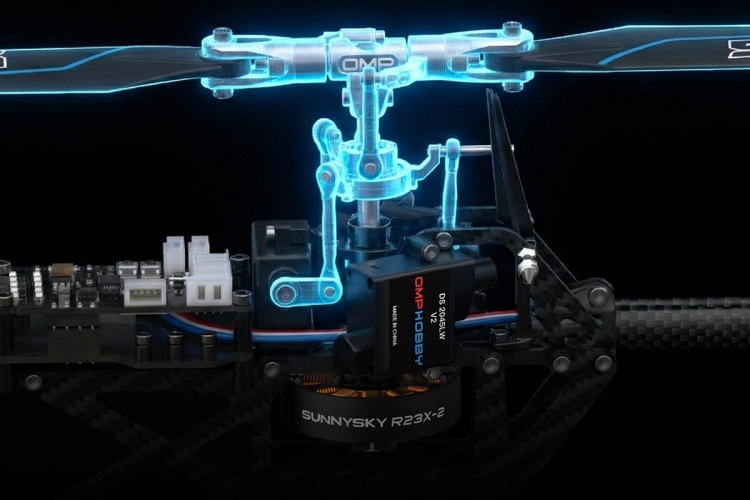 Jako první model ve své velikostní třídě má M1 V3 PRO hlavu nosného rotoru s axiálními ložisky. To výrazně prodlužuje životnost ložisek unašečů listů a zároveň nabízí plynulejší a přesnější ovládání úhlů náběhu listů, a tím i tahu rotoru a cyklického i kolektivního řízení. Spolu s novou geometrií rotoru a novými listy APEX 125 je tato nová, černě eloxovaná hlava rotoru připravena pohánět a vést M1 V3 PRO i těmi nejnáročnějšími 3D obraty. Zároveň umožňuje neuvěřitelně přesné a jemné ovládání při nižších otáčkách. Díky nové geometrii rotoru optimalizované pro OFS3+ umožňuje M1 V3 PRO větší autoritu řízení než kdykoli předtím.