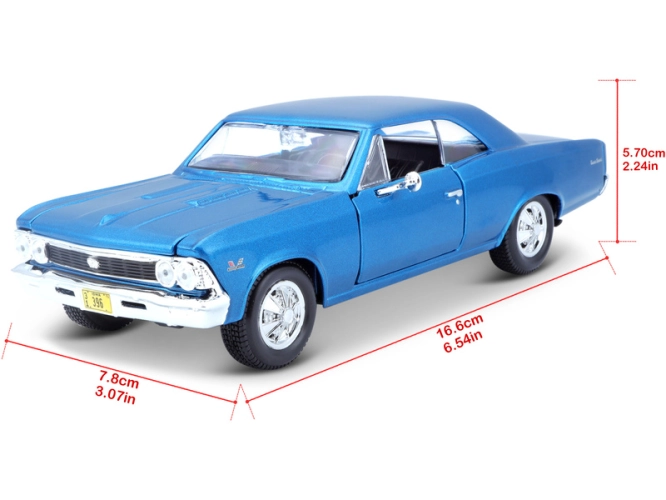 Kovový model auta 1:24 Maisto 31960 Chevrolet Chevelle SS 396 1966 nejen pro sběratele. Model je v detailním provedení. Barva modelu je modrá metalíza.