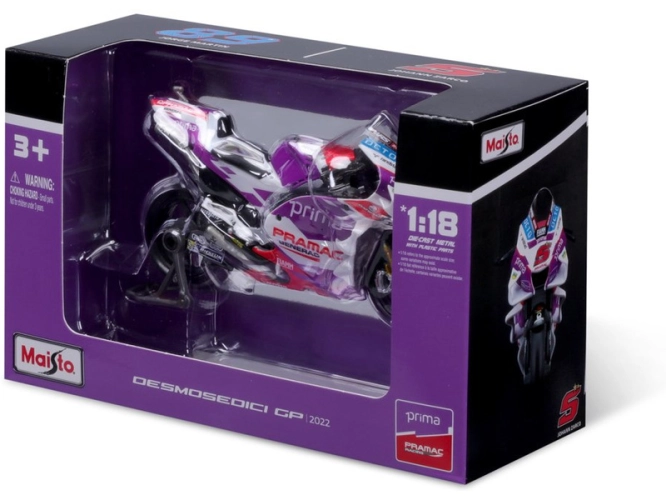 Model Maisto 36390 závodního motocyklu Ducati Pramac Racing 2022 #5 Zarco je v detailním provedení. Model je na plastikovém podstavci. Ideální dárek pro kluky i dospělé.