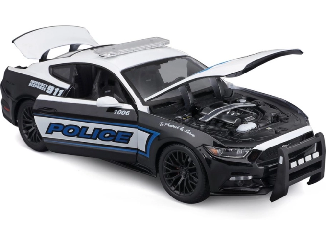 Kovový model Maisto 31397 Ford Mustang GT 2015 v měřítku 1:18 nejen pro sběratele. Detailní provedení, přívětivá cena, barva černo-bílá, délka přibližně 24 cm. U modelu lze otevřít dveře.