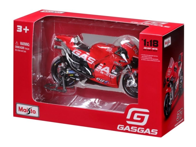 Model v měřítku 1:18 Maisto 36392 závodního motocyklu Maisto GASGAS Tech 3 2023 #37 Fernandez nejen pro sběratele. Detailní provedení, velmi přívětivá cena, délka 12 cm.