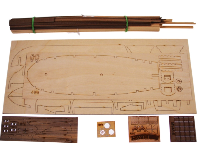 Sada obsahuje 14 kovových děl. Laserem řezané dřevo umožňuje snadnou konstrukci. Ocelové armatury jsou obsaženy stejně jako součástí vybavení jako záchranné čluny a kotvy, bloky. panenky, šňůra, měděný a mosazný řetěz, hřebíky, kovové ozdoby, typové štítky a štítky atd.