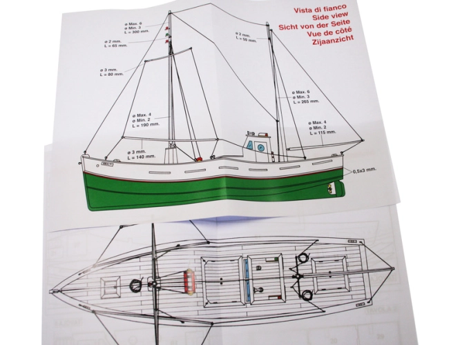 Set obsahuje kompletní sadu výkresové dokumentace modelu v měřítku 1:1 s obrázky jednotlivých detailů. Na výkrese jsou v měřítku nakresleny montážní sestavy, jejich kompletace a to včetně stěžňů a ráhen a způsob vázání lanoví. Vícejazyčný postup stavby rámcově upravuje logické sestavení jednotlivých komponentů.
