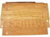 Po otevření víka krabice naleznete dřevěné díly modelu z překližky, sadu lišt, drobné součásti uzavřené v sáčcích, sadu výkresů a manuál.