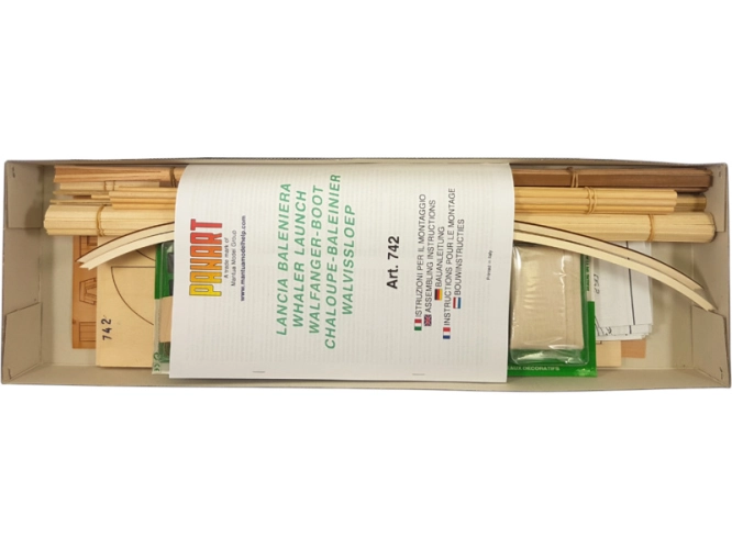 Stavebnice neplovoucího modelu lodi Mantua Model Walfangboot v měřítku 1:16 o délce 615 mm. Půvabná modelová replika typu otevřeného velrybářského člunu, který byl rozšířen v druhé polovině 19. století. Velké měřítko modelu umožňuje detailní zpracování vnitřní části lodi. Stavebnice obsahuje dřevěné díly vyřezané laserem, spoustu maketových detailů, mosazné a kovové odlitky. Pro ušití plachet je obsažena plachtovina, pro lanoví jsou v balení provázky. Stavebnici doplňují dva velké plány se všemi detaily a stavební návod se seznamem dílů. I málo zkušení modeláři zvládnou postavit tento pěkný rybářský model.