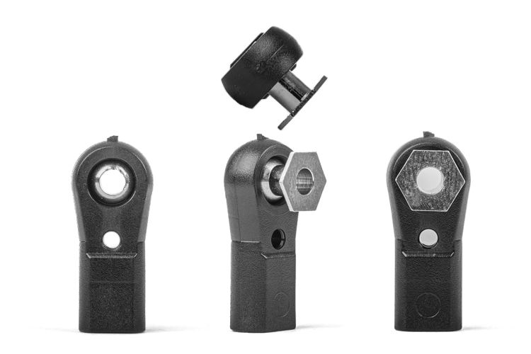 Nylonový kulový čep pro velké modely letadel a modely lodí nebo aut poháněné benzinovým motorem. Je téměř nemožné rukou vycvaknout kuličku z nylonového pouzdra, ale přesto je pohyb v něm velmi hladký. Poniklovaná kulička s vnějším průměrem 6mm. M3 spojova