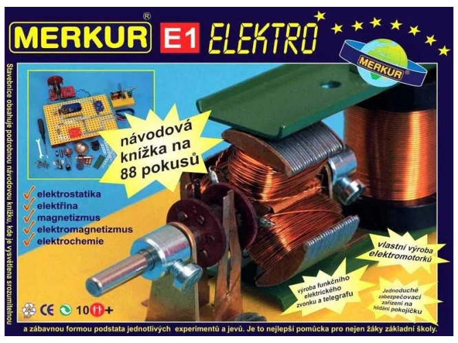 Merkur elektronik E1 je stavebnice ideální pomůckou pro žáky ZŠ, kteří se ve škole poprvé v hodinách fyziky seznamují se základy magnetizmu a také s tím, jak vzniká elektrický proud a co všechno umí.