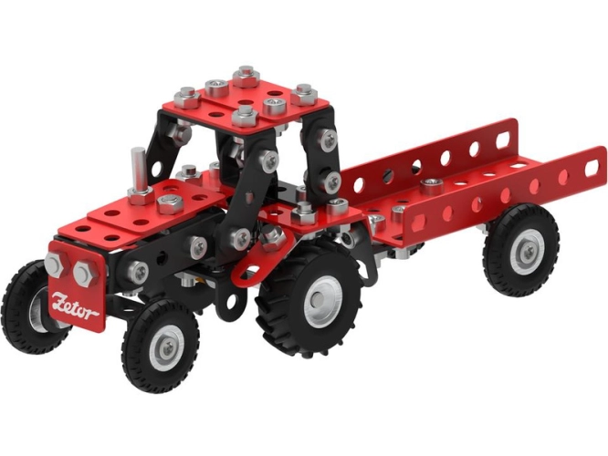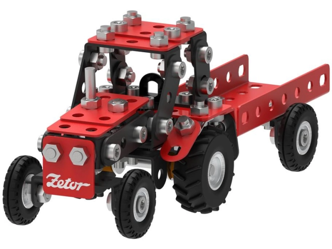 Klasická česká stavebnice Merkur - traktor Zetor s vlekem. V balení najdete podrobný návod, Merkur sadu nářadí a unikátní Merkur díly. Merkur díly jsou univerzální a tak vás neomezí v jakékoli modifikaci a nápadu. Stavebnici tak můžete sestavit podle návodu nebo podle svých představ.