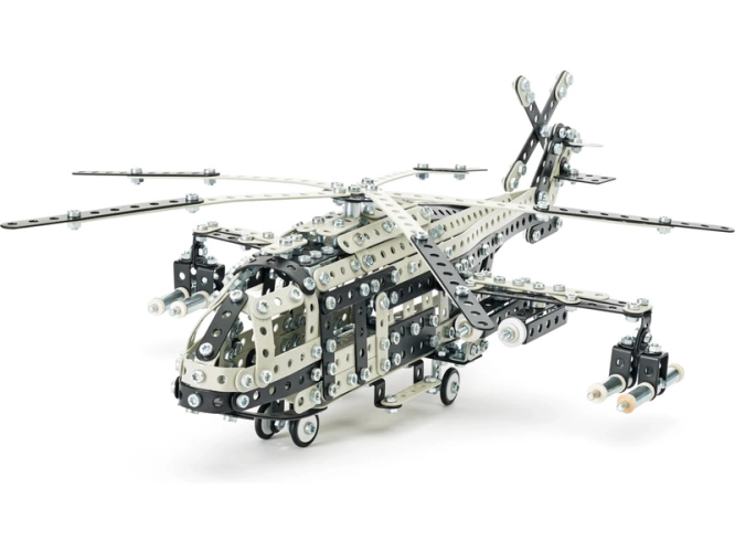 Klasická česká stavebnice Merkur - Vrtulník Mil Mi-24. V balení najdete podrobný návod, Merkur sadu nářadí a unikátní Merkur díly. Merkur díly jsou univerzální a tak vás neomezí v jakékoli modifikaci a nápadu. Stavebnici tak můžete sestavit podle návodu nebo podle svých představ.
