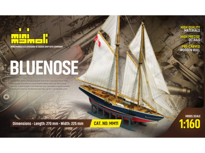 Model lodi Bluenose, z řady Mini Mamoli, v měřítku 1:160. Tento rychlý rybářský škuner se stal známý svou zvláštní elegancí, rychlostí a agilitou. Byl používán nejen pro rybaření, ale i pro regaty. Vhodné pro začínající modeláře. Model lze sestavit během několika hodin. Vhodné od 14 let.