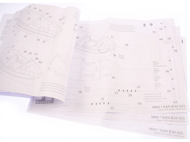 Set obsahuje kompletní sadu výkresové dokumentace s postupem stavby, na výkrese jsou pečlivě označeny díly a je zde i seznam jednotlivých součástí.