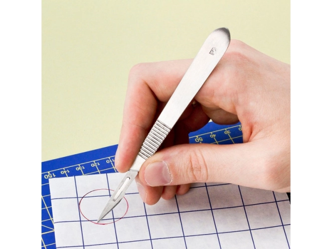 Skalpel Modelcraft s rukojetí z nerezové oceli, držákem čepelí varianta #3 a s pěti profesionálními čepelemi Swann Morton z uhlíkové oceli typu #11. Jedná se o nástroj pro modelářské, řemeslné a výtvarné činnosti na řezání, vyřezávání, škrábání a rýsování materiálů jako je papír, karton, fólie, plasty, akrylát, balza a další.