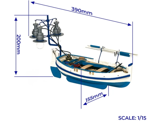 Stavebnice neplovoucího modelu lodi OCCRE Calella, v měřítku 1:15. V balení jsou díly pro stavbu - laserem řezané díly, lišty, mosazné fotolepy, lanoví a další. Stavební výkresy a návod.