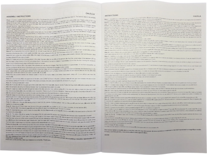 Stavebnice neplovoucího modelu lodi OCCRE Calella v měřítku 1:15. Maketa tradičního středomořského rybářského člunu, pro začínající modeláře. Stavba převážně ze dřeva, plošné díly jsou přesně řezané laserem. Trup je klasický žebrovaný. Plaňkování je dvojité. Model je vybaven zajímavými detaily, jakou jsou lucerny nebo vybavení lodi. Výhodou stavebnice je špičkové balení s dobře ochráněnými díly, obrázkový návod krok po kroku a sada výkresů.