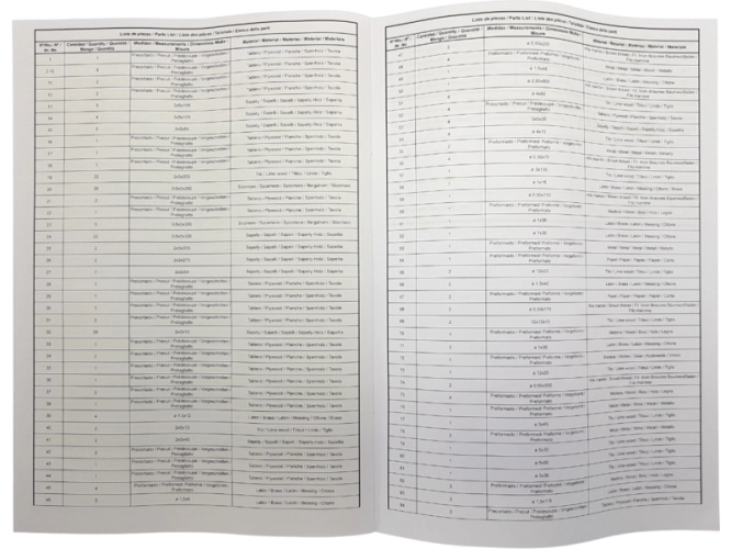 Set obsahuje kompletní sadu výkresové dokumentace modelu v měřítku s obrázky jednotlivých detailů. Na výkrese jsou nakresleny montážní sestavy, jejich kompletace. Vícejazyčný postup stavby rámcově upravuje logické sestavení jednotlivých komponentů.