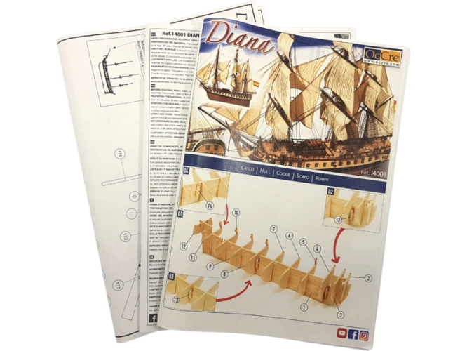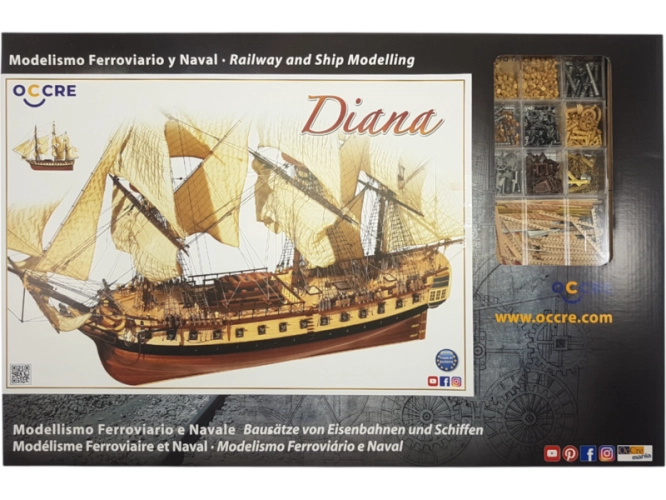 Stavebnice neplovoucího modelu lodi Diana od značky OCCRE v měřítku 1:85. Španělská válečná fregata se silnou výzbrojí, sloužící v boji proti revoluční Francii a později proti Británii. Stavba převážně ze dřeva, plošné díly jsou přesně řezané laserem. Trup je klasický žebrovaný. Plaňkování je dvojité. Na modelu je velké množství detailů, včetně kovových odlitků jako jsou děla, kotvy, čluny, mřížky oken, nebo galionová figurka a další prvky. Záď je vykládána mosaznými fotolepy. Pro vyvázání lanoví jsou v balení různé provázky. Ušité plachty zjednodušují stavbu. Výhodou je špičkové balení, obrázkový návod, sada výkresů.