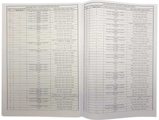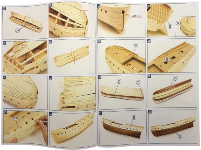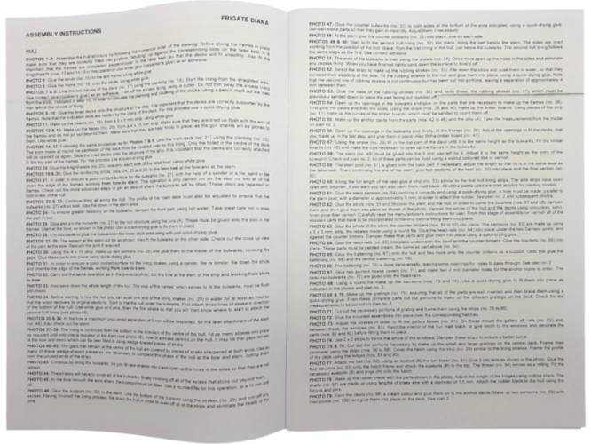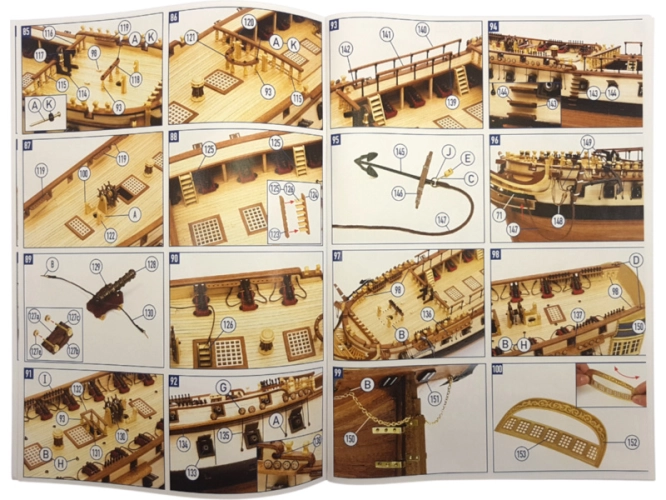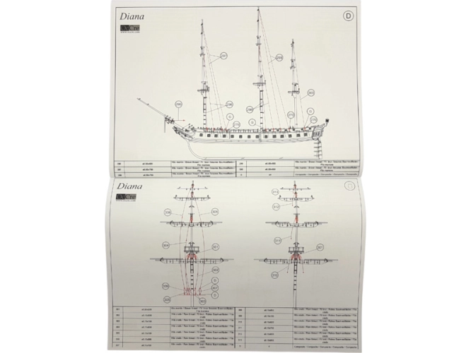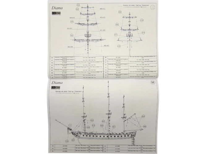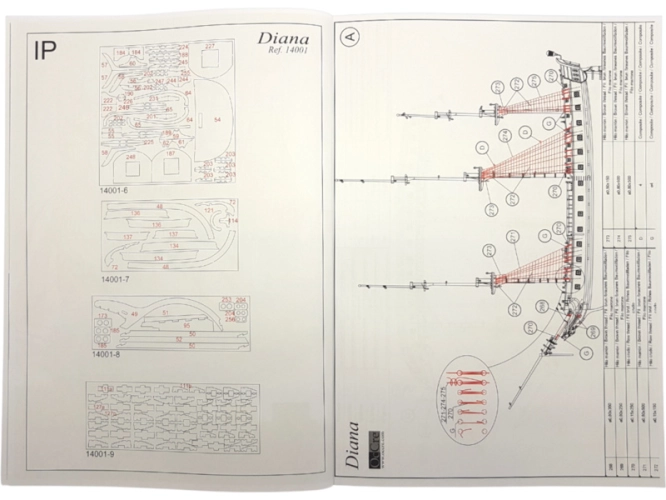 Set obsahuje kompletní sadu výkresové dokumentace modelu v měřítku s obrázky jednotlivých detailů. Na výkrese jsou nakresleny montážní sestavy, jejich kompletace a to včetně stěžňů a ráhen a způsob vázání lanoví. Vícejazyčný postup stavby rámcově upravuje logické sestavení jednotlivých komponentů.