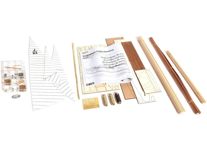 Stavebnice neplovoucího modelu lodi OCCRE Endeavour jachta – Americas Cup 1934, v měřítku 1:75. V balení jsou díly pro stavbu + plachty - laserem řezané díly, lišty, mosazné fotolepy, lanoví a další. Stavební výkresy a návod.