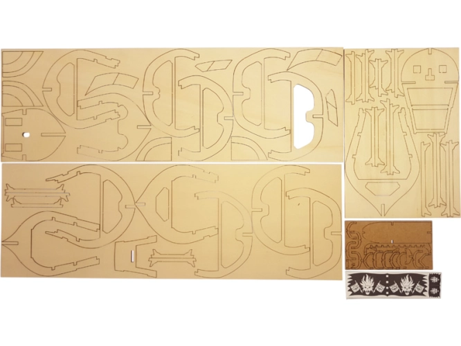 Po otevření víka krabice naleznete špičkově zabalené díly, které jsou výborně chráněné proti poškození a zároveň jsou logicky rozřazeny - dřevěné díly modelu z překližky, lišty a stožáry jsou staženy ve svazcích, plachty jsou uloženy v obálce, drobné součásti uzavřené v krabičce, sada výkresů a manuál.